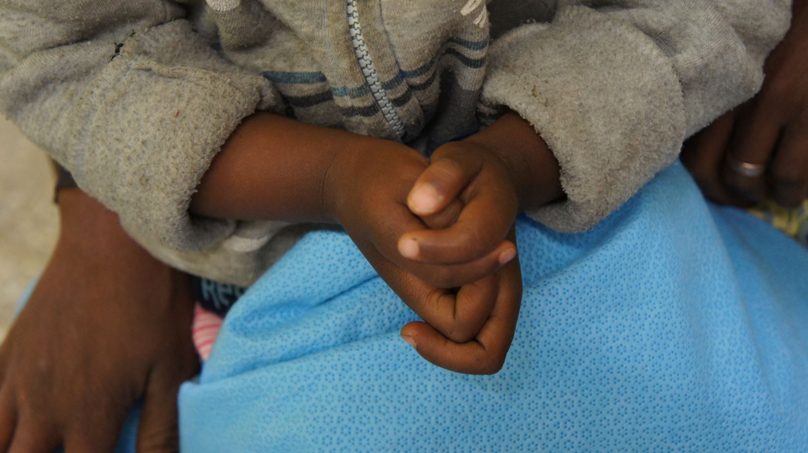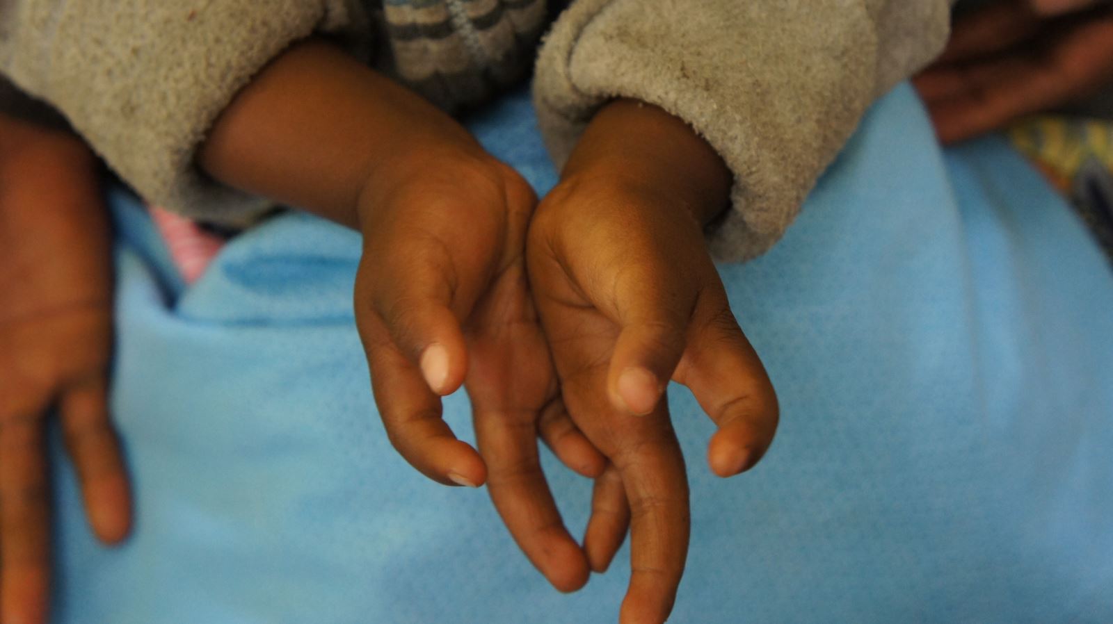 As Behailu opens his hands you can see that he is missing his central digits bilaterally and the cleft is starting to show.