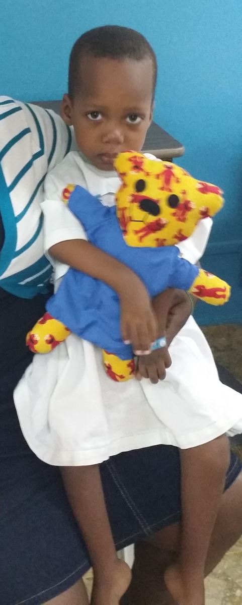 Engel has decreased ability to extend his left wrist due to congenital joint stiffness and muscle weakness. Surgery chosen for Engel was a dorsal carpal wedge osteotomy to improve his left wrist extension for functional tasks. He was placed in a cast post op. Therapy was continued for his right UE while in the hospital. Engel was used to fine motor and reaching during play therapy. Engel told the therapist that he liked the stretchy ball because he could stretch it like the therapists stretched him. He had a very large vocabulary for only 3 years old, not unusual for children with arthrogryposis.